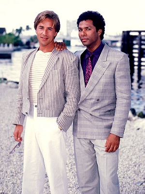Beach buddies: In the ’70s, Starsky & Hutch use a jog on the beach for shameless self-promotion (left); in the ’80s, Miami Vice’s Crocket and Tubbs use the beach to pose in shameful men’s fashion