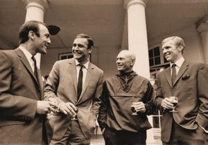 The England players themselves, if neither being regarded as utterly normal working class men before the triumph or on a par with Lennon or Jagger after it, did find themselves somewhat pulled into the fashionable glitterati for a brief period. And none more so than the boyishly handsome, 25 year-old Bobby Moore – the proto David Beckham. Soon his image was everywhere, as was that of his trendy and attractive wife Tina. If he’d have run for PM he’d have probably won. A public vote he definitely did win was the BBC’s Sports Personality of the Year award that December, with Geoff Hurst coming third.