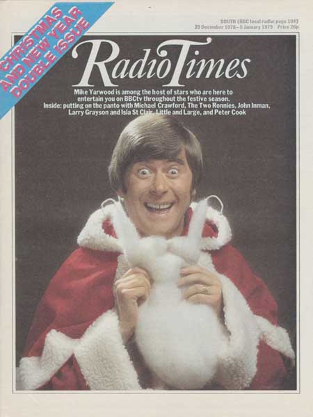 Seasonal Seventies: Bruce Forsyth and Andrea Redfern hosting 1973’s Christmas Generation Game (left); Mike Yarwood on 1978’s Christmas and New Year bumper issue Radio Times cover (middle) and Ronnie Barker and Richard Beckinsale full of the festive spirit in Porridge (right)