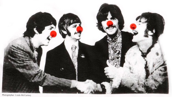 Help!: imagery of The Beatles was used to publicise Red Nose Day in 2009, the appeal that year raising the enormously impressive sum of £80 million for good causes in both Africa and the UK