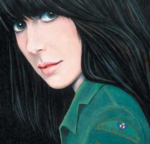 California dreamin’: the album cover to Jefferson Airplane’s Surrealistic Pillow album (r); ‘Scout’ a self-portrait by Grace Slick from a 1960s photo in which she wears a scout jacket (l)