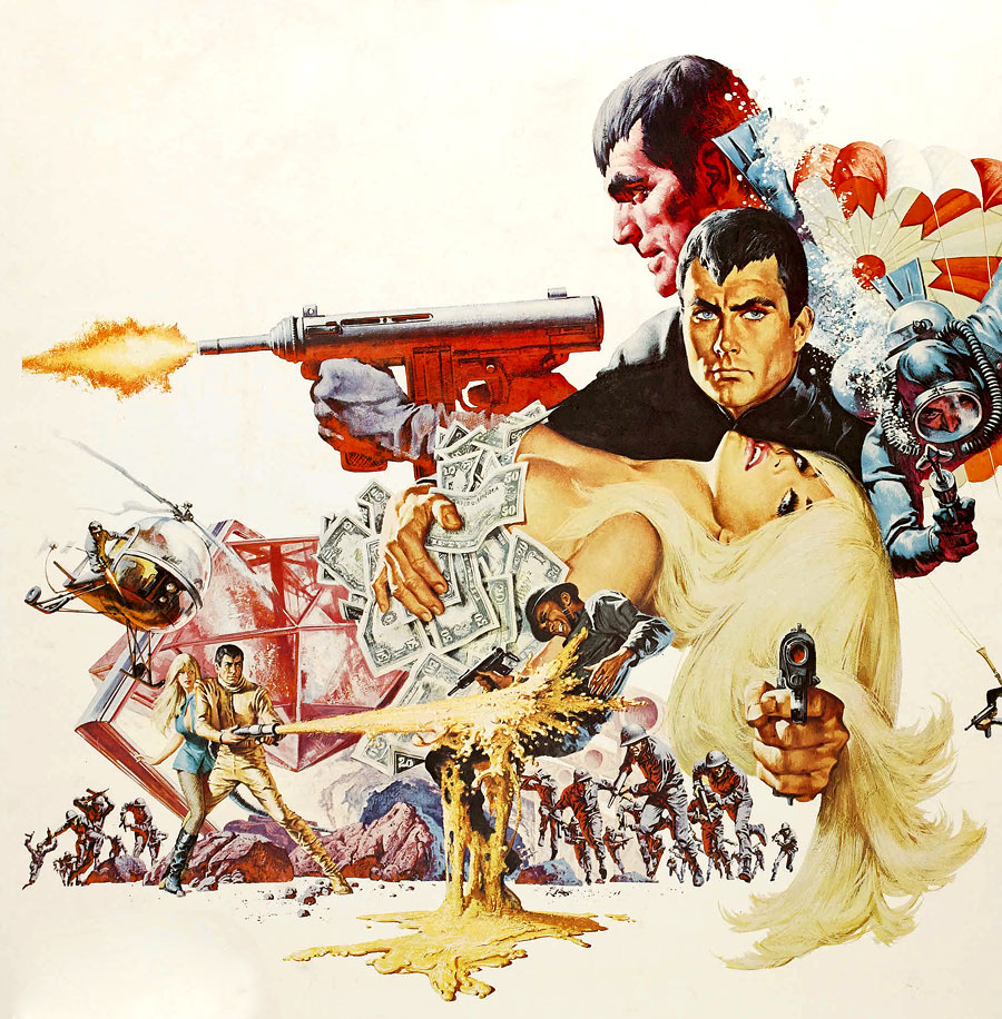 Three posters here (I spoil you, I know, I really do) and all by the same artist, Frank McCarthy. In addition to being a producer of fantastic film posters, the late, great McCarthy also expertly doodled paperback covers, advertisements and magazine artwork, until in 1968 he gave up all that commercial stuff to focus on what he’d always held most dear, paintings of the American West. His cinema work, though, included posters for The Ten Commandments (1956), The Dirty Dozen (1967) and Once Upon A Time In The West (1968), but here are – to my mind, at least – perhaps his three best efforts in the name of film advertising. Macho, exciting and naturalistic but with a flair for the fantastic (like much of his poster art), all three display McCarthy at the peak of his movie publicity powers. The first is an unused artwork for the Bond film that came at the height of ’60s ‘Bondmania’ Thunderball, which for me is better than the actual posters used for the film – McCarthy created it in conjunction with felllow artist Robert McGinnis, with whom he also produced posters for the 007 epics You Only Live Twice (1967) and On Her Majesty’s Secret Service (1969). The second effort is for The Great Escape and is a genius example of using time-lapse to build anticipation from the top to the bottom of the artwork (why the technique wasn’t used in the movie’s main poster, I’ll never know). The final effort comes from the little-seen spy hokum Danger Diabolik and simply demonstrates an awesome composition – no doubt far better than that of the flick itself.