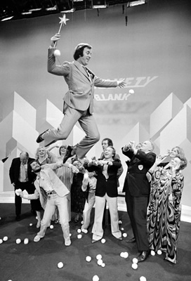 The public loved it, especially on one occasion when Radio 1 DJ guest Kenny Everett grabbed the end of ‘Wogan’s Wand’, his trademark car aerial-style microphone (which, true to the show’s cheapness, actually was an adjusted car aerial), and bent the thing to a ridiculous angle, forcing the former to carry on with the intrument in that condition for the rest of the recording. Whenever Everett guested on the show thereafter, he’d scupper the microphone each time – once doing so by attempting to cut it in two with a giant pair of scissors. Over 20 years later, Wogan himself would destroy his wand – as it were – for comic effect in a one-off Blankety Blank special broadcast as part of a Children In Need night.