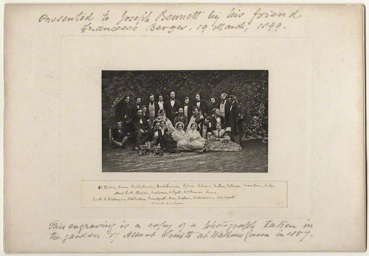 Victorian vignette: a group captured by an unknown photographer in 1857 including Dickens (front row, sitting sideways) and his great friend and fellow acclaimed author Wilkie Collins (front row, head leaning forward) (National Portrait Gallery, London)