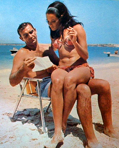 Directed by: Terence Young; Produced by: Kevin McClory (Executive Producers: Harry Saltzman and Albert R Broccoli); Screenplay by: Richard Maibaum and John Hopkins – adapted from the novel by Ian Fleming (1961), itself based on a screen-treatment by Fleming, McClory and Jack Whittingham/ Locations: Anet and Paris, France; Nassau, New Providence Island and Paradise Island, The Bahamas; Chalfont Park and Pinewood Studios, UK/ Cast includes: Sean Connery (James Bond); Claudine Auger (Domino); Adolfo Celi (Emilio Largo); Luciana Paluzzi (Fiona Volpe); Martine Beswick (Paula); Molly Peters (Pat Fearing)