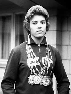 Larisa Latynina ~ across the ’56 (Melbourne), ’60 (Rome) and ’64 Olympics, this Soviet – to be precise, Ukranian – gymnast won 18 (9 gold, 5 silver, 4 bronze) medals, more than anyone has managed before or since. She also holds the record for the most individual medals (outside of those won in a team): 14 of those 18.