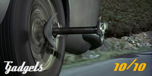 That age-old tradition of Bond setting off on a mission after seeing Q like a freebie-toting presenter of The Gadget Show starts here, folks. Yes, the head of Q-Section becomes a real character for the first time in Goldfinger and he and Bond get off to the best (or worst) possible start; the latter irritably putting up with the former’s workman-like pride in the seemingly ridiculous alterations he’s made to his new motor, the oh-so iconic Aston Martin DB5, and irritating the former as he ‘jokes about his work’. But those alterations prove far from ridiculous when he gets out into the field. Not only are the DB5’s revolving number plates, tyre-slashers, oil slicks, rear bulletproof shield, machine guns mounted from behind the front indicators and, yes, that ejector seat all invaluable, collectively they ensure the DB5 is easily the coolest of all the gadgets in the Bond canon. 007 also has a couple of tracking homers; one that’s magnetic, so it’s attachable to opponents’ vehicles, and a dinky one that fits in the sliding heel of his shoe.