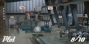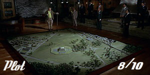 Perhaps oddly for such a fondly recalled Bond film, Goldfinger is far from the most action-packed. One of its most eternally popular sequences is certainly all about action, though: the car chase around Goldfinger’s Swiss factory buildings involving Bond’s gadget-laden Aston Martin DB5. Although stop-and-start and thus not as fast-paced as it might be, it’s one of the highlights of the film, no question (in a movie of many highlights), allowing 007 to show all his ingenuity, all of the car’s horsepower and all of its toys as he attempts to out-run, out-fox and generally try to escape from his opponent’s minions. The only other real action sequences are the opening fight (with the goon’s classic electrocuted-in-the-bath demise) and Bond’s showdown with Oddjob inside Fort Knox while US troops raid the outside, which to be fair is mostly played for laughs to demonstrate how indestructible the grinning villain is until our hero uses his nous to defeat him.