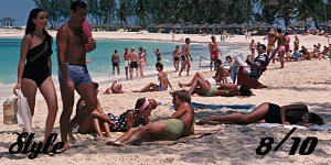 Its music often may be one of its stronger elements, but Thunderball‘s John Barry-penned score simply isn’t up to the quality of the previous two flicks’. It’s at its best – like the film itself – when setting mood. An example is Dance With Domino/ Bond’s Apartment (click the above image to hear it); the first half of which is slow, smooth and lilting, almost sad, but fits perfectly with the cool that Bond adds to the high-living Nassau world he encounters, while the second half sets suspense through an equally slow, but eerie  theme (which seems to echo the other-worldly drift of the sea). At its worst, though, the score goes crazy at moments when the underwater action doesn’t thrill enough in an effort to up the ante. Not classic stuff. Tom Jones’ Barry-written theme, with lyrics by Don Black, is fine – although the turned-down effort from Dionne Warwick, Mr Kiss Kiss Bang Bang (orchestral versions of which feature in the film), is better.