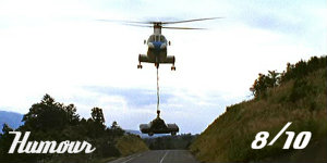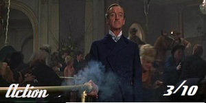 Given this flick’s spoof aspirations, it’s supposed to be all about the gags (supposed to be), thus action‘s at a premium. The most obvious and lengthy example of this facet is the climax at ‘Casino Royale’. Sadly, it’s one of the weakest points of the entire movie – and many might say that’s saying something. Utterly ridiculous, it begins as a pastiche of a pointless saloon brawl and – fittingly then? – escalates into an all-out battle involving cowboys arriving as if on a cavalry charge and, via look-at-this! deus ex machina, Indians (wearing ‘007’ warpaint) parachuting into proceedings from an overhead plane. It’s obviously all supposed to be absurd anarchy, but none of it’s funny, just embarassing. More successful is earlier on when Sir James’s vintage car is pursued from Scotland to London by a bomb-carrying milk-float, which is operated via remote-control by lovelies at SMERSH control as if the chase is a Scalextric race. Silly but entertaining.