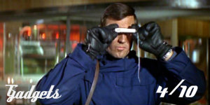 In keeping with its back-to-Fleming-basics ethos, Majesty’s doesn’t really do gadgets. This was a very wilful decision on the filmmakers’ part to return the character of Bond to one that relies on his wits rather than the latest must-haves from Q-Branch to get him out of tight scrapes – and given how well the flick executes this, as something of an inverse score maybe its points accrued here should actually be higher. Perhaps the best example of this is when 007 is imprisoned in the impressive Piz Gloria room that houses the inner workings of its cable car system. Here, with no gadget to aid his escape, Bond rips the cloth out of his pockets and uses them as gloves as he works his way along the cable running from a giant wheel to the cable car in the snowy outside. It’s a fine, tension-filled scene. The few gadgets that do pop up, though, number a bulky safe-cracker-cum-photocopier that our man uses in Blofeld’s lawyer’s office (while he passes the time flipping through a Playboy), a nifty small camera and, best of all, a SPECTRE-produced make-up set for each of the ‘Angels’ that ensures they can (under hypnosis) spread the ‘Virus Omega’.