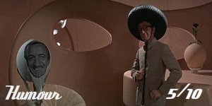 Unlike Casino Royale‘s girls, its villains are pretty much instantly – and thankfully – forgettable. Ostensibly the chief baddie, Orson Welles as Le Chiffre seems perfect casting; the reality’s far from it. Given the film’s incongruously various plot strands, the SMERSH heavyweight doesn’t actually have a hell of a lot of screen-time nor then does he exert much menace. Moreover, as Welles and Sellers found they simply couldn’t get on, their scenes together were filmed while only one of either thesps was present so they didn’t have to face the other. Plus, Welles’ inexplicable penchant for performing magic tricks adds a head-scratching bizarreness to the already strong sense of the surreal. The real villain of the piece, of course, is Woody Allen’s Dr Noah (aka Jimmy Bond). Although one of the movie’s most consistently amusing elements and his villainous reveal wryly Wizard Of Oz-esque, Noah/ Jimmy ultimately ensures its daft and deeply unsatisfying conclusion – and no Bond film should have one of those.