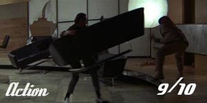 Kaboom! Ironically, Lewis Gilbert – the director best known outside of Bond for his excellent tragi-comic dramas Alfie (1966) and Educating Rita (1983) – loved to end his three Bond flicks with a good ol’ giant battle and, as such 007 film finishes go, Twice is a king among princes. The hollowed-out volcano-set battle that concludes this movie is, frankly, what the entire thing works its way up to and it’s an absolute stonker. Nifty ninjas abseiling down into the lair (some boasting wonderful sword skills, others throwing ninja stars and others still operating as dead-shot snipers) up against dozens of SPECTRE minions – oh, what’s not to love? Explosions galore and more intimate hand-to-hand combat too, this is what big Bond action is all about, all right. Yet this arguably isn’t even the best slice of action in the movie, which has to be the air-bound scrap between the gadget-laden gyrocopter Little Nellie and its waspish bigger cousins, which one-by-one and oh-so coolly to the backing of the Bond Theme, the former swats out of the sky. And, let’s not forget, there’s the terrific skirmish too between Bond and the goon in Osato’s office during which they use the furniture to fight each other. It’s like the best visit to Ikea ever.