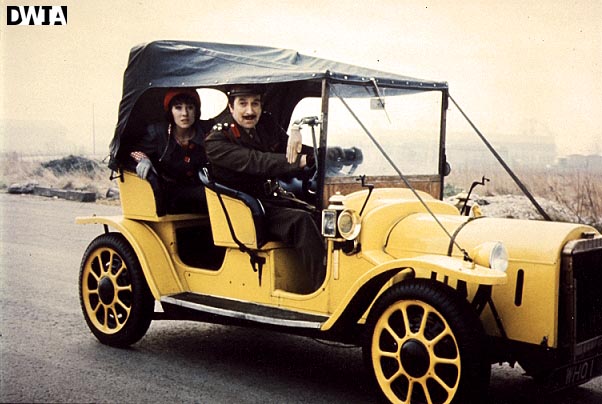 Bessie bezzies: classic companion actress Katy Manning (Jo Grant) poses with Jon Pertwee on board The Third Doctor’s favourite mode of Earth-bound transport, his beloved vintage car Bessie