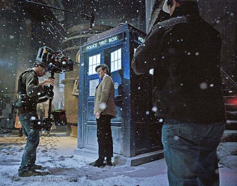 Snow moment: Smith and crew filming a scene from the 2010 seasonal special A Christmas Carol