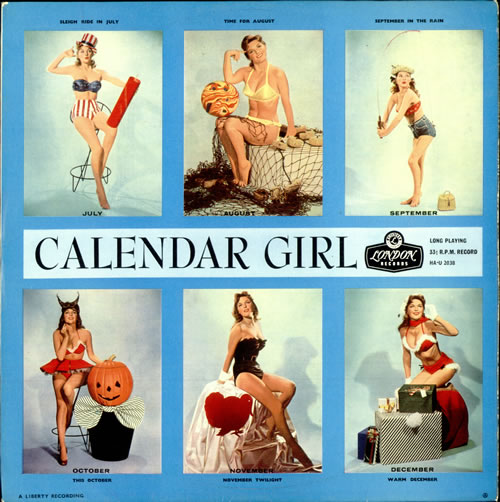 For many, before hitting its groove in the ’70s with the prog rockers, the ‘concept album’ started with Sgt. Pepper. Not so, folks, for here’s a glorious example of the concept album – and accompanying artwork – from the mid-’50s courtesy of the husky-voiced sex kitten that was the lovely Julie London. Calendar Girl, an on-form, orchestrally backed offering from the chanteuse, cleverly features 12 tunes (six on one side of the record; the other six on the other) that, one after the next, reflect the 12 months of the year and most of which are jazz standards (June In January; February Brings The Rain; Melancholy March; I’ll Remember April; People Who Are Born In May; Memphis In June; Sleigh Ride In July; Time For August; September In The Rain; This October; November Twilight and Warm December). Even more cleverly, the record is complemented by a wraparound sleeve sporting 12 finely fetching painted portraits of Ms London in cheesecake poses also representing the months of the year (i.e. ‘Miss January’, ‘Miss February’ etc). But not content with just that already classic concept-ness, the album additionally offers a 13th month track, er, The Thirteenth Month, which is visually represented by an awesomely appealing, pull-out and keep image that comes inside the sleeve. Original LP versions of the album are, understandably, nowadays major collectors’ items.
