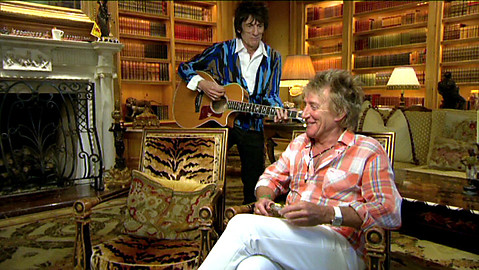 Forever Faces: Ronnie Wood strums and Stewart plays along before a Chez Rod interview