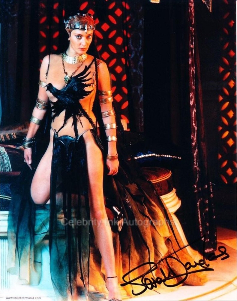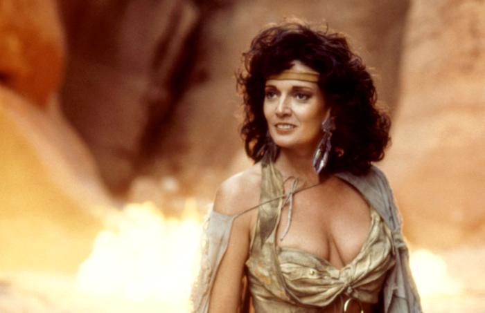 Sarah – appearing as Ursa, Kryptonian cohort and squeeze of Terence Stamp’s General Zod, in first Superman (1978) and then much more memorably Superman II (1980), as well as in several other fantasy film and TV roles, such as Queen Taramis in Conan The Destroyer (1984), Pamela in mini-series V: The Final Battle (1984), sorceress Lyranna in Beastmaster 2: Through The Portal Of Time (1991) and as the heroine in The People That Time Forgot (1977). Between 1983 and ’85 she had a recurring role on California-set soap Falcon Crest (1981-90) and guested in the likes of Space: 1999 (1975-77), The Professionals (1977-81), Return Of The Saint (1978-79), Bergerac (1981-91), Remington Steele (1982-87), Sledgehammer! (1986-88), Babylon 5 (1993-98) and Stargate SG-1 (1997-2007). In recent years she’s acted on the UK stage and lent her voice to animated TV series and many audio dramas.