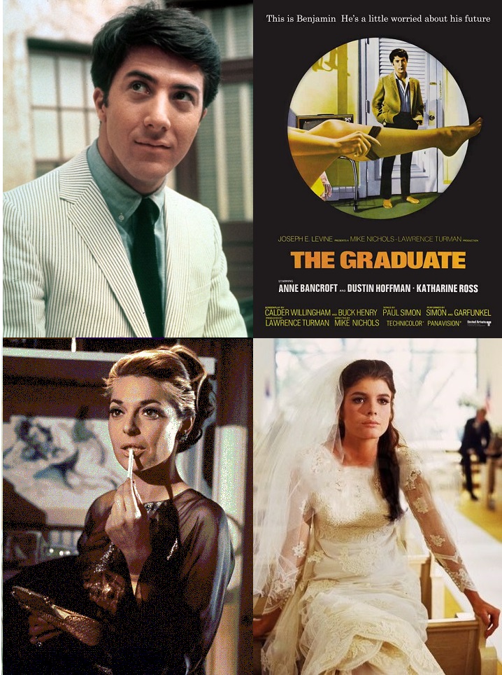 Directed by: Mike Nichols/ Starring: Dustin Hoffman, Anne Bancroft, Katherine Ross, William Daniels, Elizabeth Wilson and Murray Hamilton/ Country: USA/ 105 minutes/ (Social-satirical-comedy-drama)