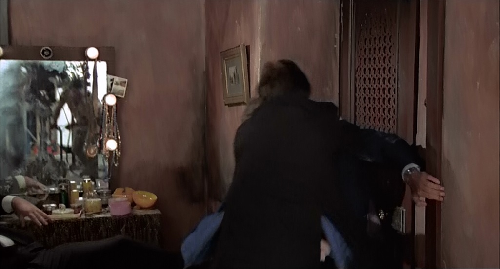 As much as Istanbul’s a fine exotic locale, its not the capture of this city that’s the most eye-pleasing thing about FRWL – indeed, in this viewing I noticed just how often the iconic Hagia Sophia basilica is featured in the distance, which isn’t really necessary; actually, it feels a bit like an over-reliance. No, the quality in FRWL’s look is most derived from Ted Moore’s outstanding cinematography. There are entire sequences that are deliciously filmed, such as Bond and Tania’s rendezvous at the basilica, Kerim killing Krilencu and especially Grant’s – posing as Nash – meeting Bond (see shot above).