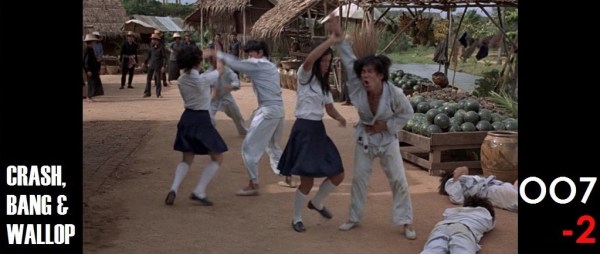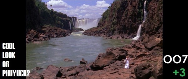 1.02.00: Ladies and gentlemen, the Tarzan yell. Why? Just, why? I mean, why is Bond even swinging on a vine there? There’s no set-up in the seconds before it to show why the only way out of the jungle and into the lake would be via the vine. Lazy stuff all for the crap movie-meta gag.