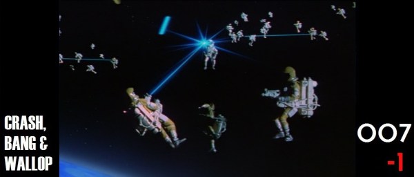 - 007 shoots down a helicopter by hitting a bloke inside with one shot