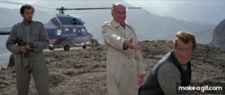 14.04: Ha, Jim Fanning. I love Jim Fanning. Right up there with the other rather random, rather crusty, old ‘experts’ that MI6 calls on for advice and/ or Bond-M briefings in several of the films. The likes of Colonel Smithers (GF), Hilary Bray (OHMSS), Sir Donald Munger (DAF) and, of course, Sir Godfrey Tibbet (AVTAK). Partly, they’re of such quality in my book because they all have awesome monikers.